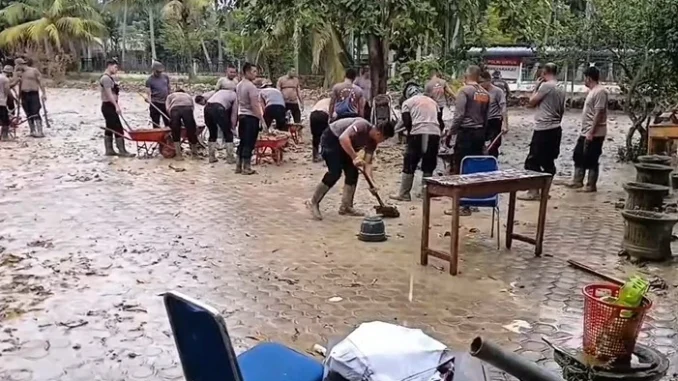 Polri melalui personel Satuan Brimob Polda Aceh yang tergabung dalam BKO Operasi Aman Nusa II bergerak cepat membantu pemulihan fasilitas pendidikan pascabencana banjir. Aksi tersebut diwujudkan melalui bakti sosial pembersihan lingkungan Sekolah Dasar Negeri (SDN) 15 Seunuddon, Kecamatan Seunuddon, Kabupaten Aceh Utara, Jumat (2/1/2026).